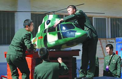 中国人民解放军军械工程学院的同学正在调试他们的作品《直升机应急逃生系统》。