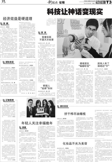 善于推销,是性格,也是能力。本届“挑战杯”上,参赛项目的宣传页像雪片一样被塞进记者的手里,你还在这边展台前聊得起劲儿,身边很可能已有两三位同学在耐心等候了。“挑战杯”决赛现场就像一个大舞台,大学生们的表现是全方位的,除了精心备战的作品,得到检验的还有他们的沟通能力和心理素质。