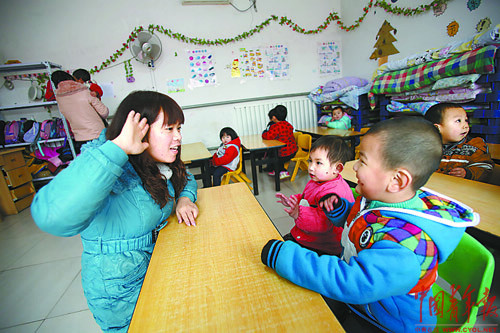 北京市昌平区东沙各庄,在村子里托儿所当老师的郭蕾正在教孩子们唱歌。来自湖北的她,业余时间正在写一部有关打工经历的自传体小说。
