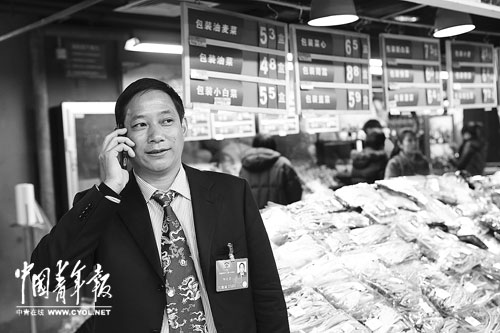 3月2日,全国政协委员邹先荣在北京某超市调研。邹先荣是重庆力帆实业质量中心成品检验部组长、获得4项国家专利的农民工。他说:“在全国两会上,我只是一个学生。我希望在未来5年,尽最大可能替基层职工说说大实话。”