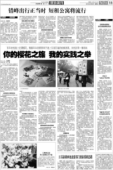 校园并非公园,每年樱花节,在武汉大学里生活学习的数万学子,不得不与来自全国各地的游客分享他们的校园,有人觉得挤,有人觉得烦,有人觉得乱,但在游人如织的校园里,也有不少学生把社会实践和自身特长结合起来,他们当义务导游、设计旅游纪念品、在落英缤纷中为游客演唱、售卖有樱花特色的美食……樱花节里,他们每个人都和武大的校园文化融为一体,带给游客和他们自己一段难忘的樱花体验。