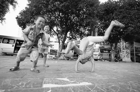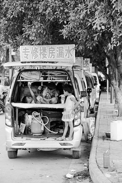 7月,广西桂林虞山桥头,一辆辆面包车,既是这群打工者起居的家,也是做生意的“门面”。面包车旁的人行道是孩子们的“领地”,他们像野草一般生长着。