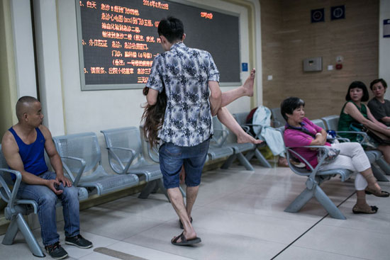 一男子抱着受伤的妻子前来就诊。晚上他喝了点酒,和妻子吵了一架,还把她眼睛踢伤了,很后悔。
