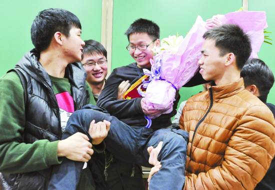 近日赴深圳成功采集造血干细胞的西安电子科技大学学生谢泽平,接受同学的鲜花和祝贺。美国一位4岁亚裔白血病患者,在美国4000万造血干细胞捐献者资料库没有找到与其匹配的骨髓,向目前仅有190万中国造血干细胞捐献者资料库求助,并与23岁的谢泽平HLA分型资料配对成功。