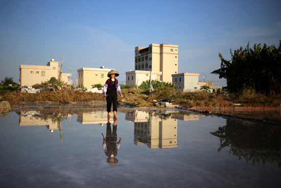老李有时也想,借着旅游热,将盐田围起来,开发成景点。但他更清楚的是,数十米远处的高楼,会迅速地四处蔓延,蚕食最后的盐田。