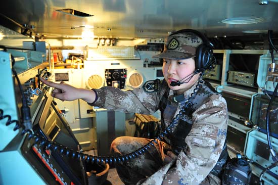 战车刚一停稳,侦察小组的4名女兵开始从各个方向归队。战车内外,30多名女兵立刻忙碌起来,她们马上就要进行“兵器展开”的各种操作。