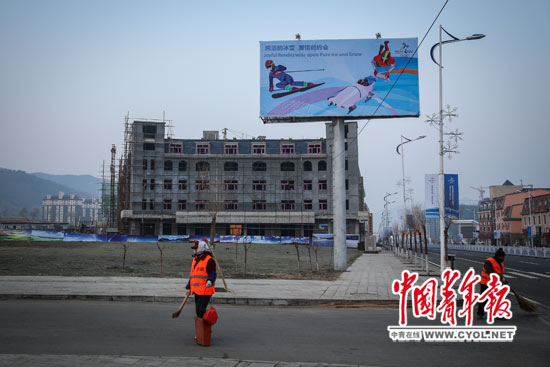 崇礼县的街头,遍布着楼盘销售处。县城周边,一栋栋正在建设的楼盘和奥运会标志此起彼伏,到处可以看到类似“底商、超市特价出租”、“年返8%,五年稳赚40%,总价30万起精装修公寓”的广告标语。随着揭晓冬奥会举办城市的临近,当地的房地产业也跟随着迎来了热潮。