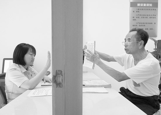 接谈法官刘清启被一位75岁的当事人指着鼻子高声指责。刘清启理解当事人因为输掉官司而极度郁闷,但是他却想不出办法让执着的老人明白没有足够证据便无法立案再审的事实。刘清启说,每每遇到当事人对处理结果不理解时,我们会尽量沟通疏导,把相关法律法规解释透彻。