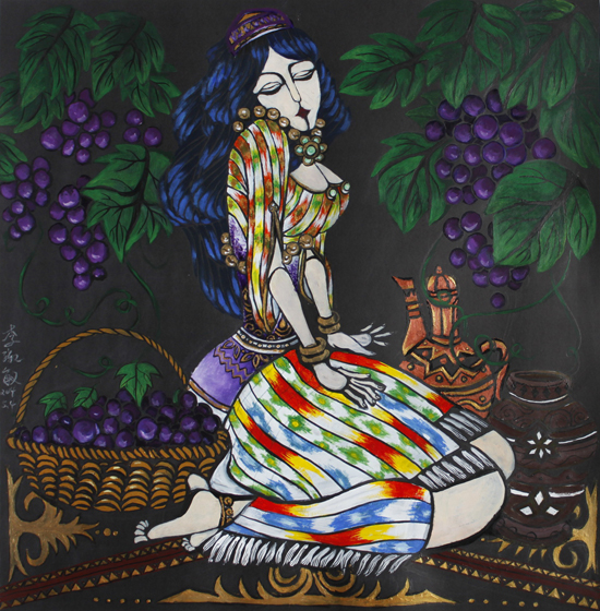 在这所“自治区级示范性高中”,李淑敏和她的同学更能深切地体会到“汉族离不开少数民族,少数民族离不开汉族,各少数民族之间也互相离不开”这句话的内涵。带着对各民族群众和新疆本土文化艺术的热爱,身为美术特长生的李淑敏,拿起画笔,在谢鸿老师的精心指导下,创作了民族题材的系列装饰画。