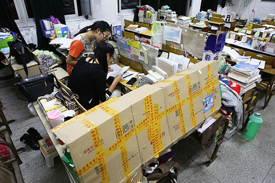 10月21日,安徽安庆师范学院,在考研自习教室,两名学生为了减少干扰,用包装盒等在课桌周边搭起“围墙”埋头苦读。