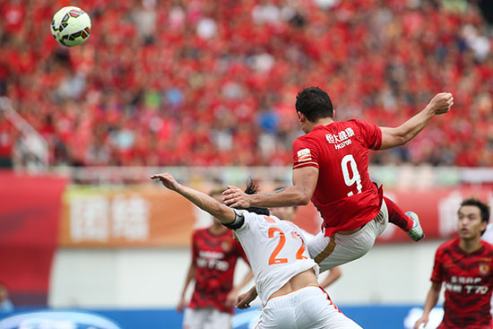 10月25日,在中超一场焦点战中,主场作战的广州恒大队与山东鲁能队战成2∶2。