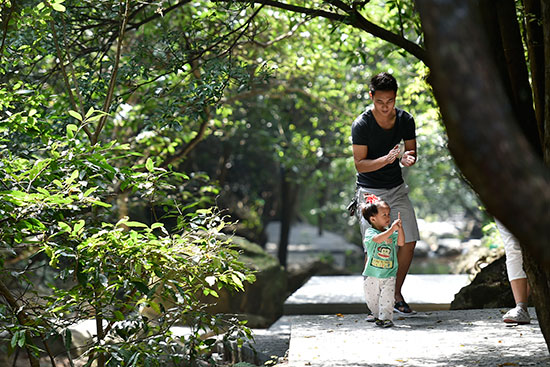 市民在东莞大岭山森林公园里散步(10月20日摄)。