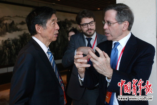 会议茶歇间隙,中国驻法国前大使吴建民和耶鲁大学中国中心主任葛维宝站在会场门口热烈地聊着。两人急切地表达着自己的观点,丰富的手势甚至让他们无暇端起一杯咖啡。他们谈论的焦点,正是如何应对全球气候变化。