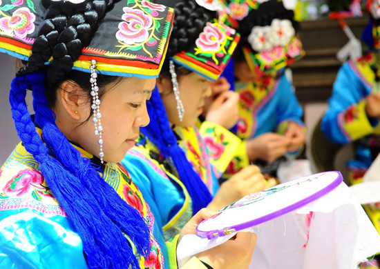 12月3日,陕西省宁强县羌州绣娘公司的“绣娘”在赶制客户订制的羌绣制品。宁强县是文化部命名的“羌族文化生态保护实验区”,近年来,当地推广羌族的特色手工艺羌绣,助力羌秀产品走出山区。黎德华/摄(新华社发)
