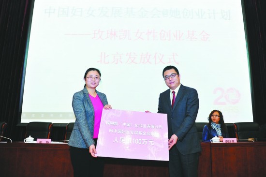 中国经济迎来“大众创业,万众创新”浪潮,女性创业面临历史新机遇。12月3日,由玫琳凯(中国)化妆品有限公司(以下简称“玫琳凯中国”)北京分公司以及中国妇女发展基金会、北京市妇联合作举办的“玫琳凯女性创业基金启动仪式”在北京市大兴区举行,此次投放的100万元基金,将继续通过提供小额无息循环贷款的形式,支持来自北京4个区县的10个微小企业。活动当天,中国妇女发展基金会秘书长助理南静,玫琳凯(中国)营运区域总监李珂,受创业帮助的妇女代表、玫琳凯公司员工共计60余人出席了仪式。