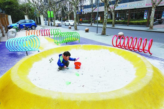 1月10日,上海启动“空间创生”,老社区出现新变化。一个沙坑、几个钻爬设施,为老公房社区的孩子增添了户外活动空间。
