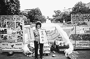 从此,康妮与托马斯,以及随后几年加入的托马斯的妻子艾伦,一起成了白宫门前的“和平守夜人”。