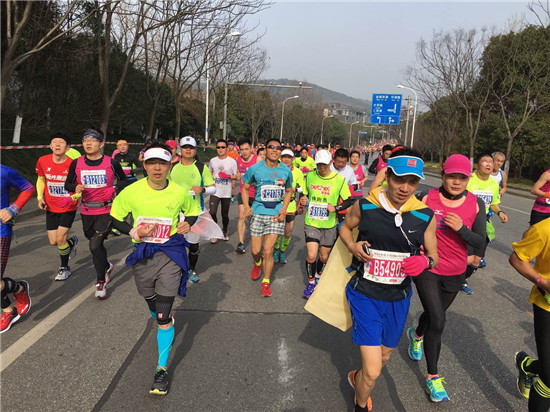 无锡马拉松最有趣的助兴节目,是组委会在一座拱桥上安排了几位穿旗袍的美女模特。多数跑者会停下来拍个照,赛道顿时拥挤起来。严伟也被撞得摔了一跤。吴臻睿扶起他,不敢停留,立刻向前跑。他逗严伟“害我没看成美女”。严伟开心大笑,在他身后,樱花盛开。