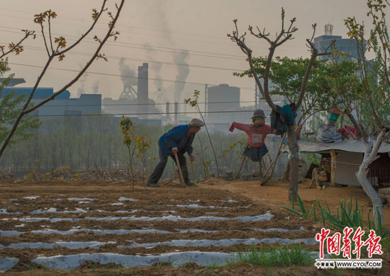 住在松汀村的姚战海眼下在路边开起了荒地,准备种点玉米。靠在钢厂做临时工为生的他去年因耳石病住院,出院后,就没工作了。姚战海今年58岁,之前在迁安中化煤化公司的提盐车间工作。这个岗位由于要接触化学制剂,年轻人怕影响身体不爱干,工友大多都是他这个年纪的人。他说,家中曾经有6亩地,2002年被当地钢厂征用,一次性补偿6万元了结。