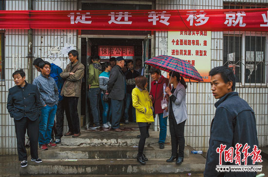 周六上午,迁安市人才市场人头攒动,唐山某钢铁集团招聘点前聚集了不少曾经在钢厂工作过的求职者。40岁的张久余带着7岁的儿子冒着小雨赶来,但他不想再进钢厂了:“钢厂的活儿太脏太累。”人才市场里,张久余的同龄人不少,受年龄和单一劳动技能限制,再就业对他们来说并不容易。
