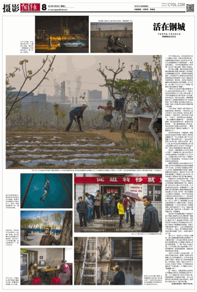 也有不少年轻人主动走出钢厂。30岁的才志林之前在一家钢厂的高炉车间喷煤,出于对环境的担心,工作6年后他选择了辞职。“我担心自己肺里都是黑的。”才志林说,“原来一起的工友不少人去北京、天津当了保安。”才志林现在在路边支了个修车摊,一个月赚五六百元,“勉强糊口吧”。
