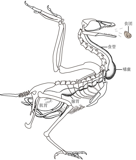 不断发现的原始鸟类化石(距今1亿多年前)表明,在鸟类演化伊始,它们是有牙齿的,在鸟类漫长的演化历史中,它们失去了牙齿和厚重的上、下颌骨,取而代之的是轻质的角质喙。伴随着这样的形态结构变化,鸟类还演化出了特别的消化系统。