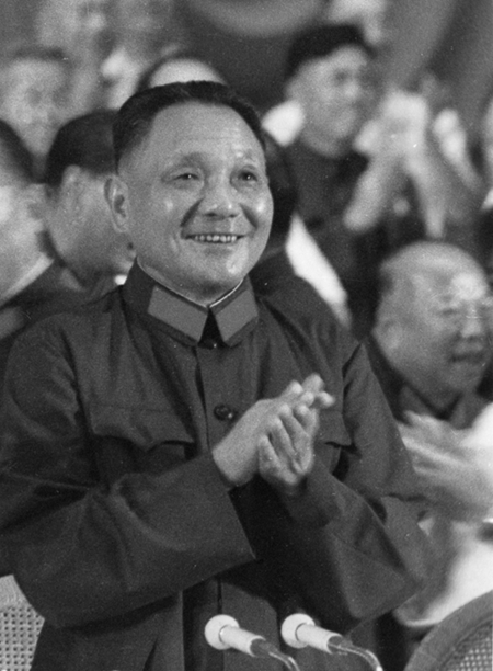 1977年,邓小平在庆祝建军50周年的纪念活动上。此前刚刚举行的中共十届三中全会通过决议,恢复了邓小平原任的党政军领导职务。视觉中国供图