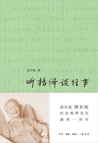 最是人间留不住,朱颜辞镜花辞树。去年5月25日,105岁的杨绛先生《走到人生边上》、走出人生边界;今年5月25日其去世一周年纪念日,三联书店重新出版吴学昭著《听杨绛谈往事》一书。该书于2008年首版,杨绛先生曾亲自为之作序,并称“征得我同意而写的传记,只此一篇”。此次新版《听杨绛谈往事》增补了作者《杨绛先生回家纪事》(后简称《回家纪事》)9000字长文及《胖安娜》《“爱得厉害……怎么说?”》三文。后两篇分别写于2010年4月、2011年7月,曾经杨绛先生审阅;《回家纪事》一篇完稿于2016年7月即杨绛先生逝后不久——披露了杨绛先生“走在人生边缘的边缘”,心静如水、淡定回家的最后时光。