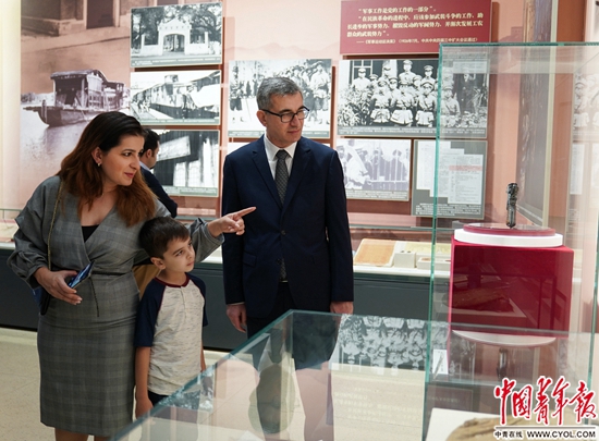 8月10日,中国人民革命军事博物馆,一位外宾带着孩子观看朱德在南昌起义时使用过的手枪。当日,包括驻华使节、外国专家等在内的400多位外宾来到中国人民革命军事博物馆,参观在这里举行的“铭记光辉历史 开创强军伟业——庆祝中国人民解放军建军90周年主题展览”。中国青年报·中青在线记者 陈剑/摄