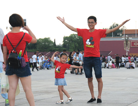 8月8日,北京,天安门广场暑假期间游人如织,来自各地的家长带着孩子在此快乐拍照,尽享美好时光。