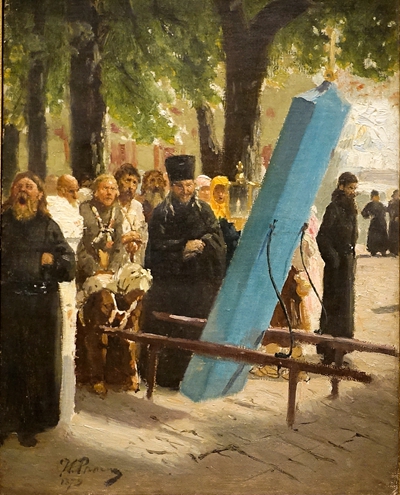 列宾1864年考入圣彼得堡皇家美术学院,以优异成绩毕业,并获得大金质奖章和公费出国留学机会,这使他有机会在意大利和法国研究欧洲的古典和近代美术。列宾认同“俄罗斯巡回画派”的艺术主张:追求进步的民主思想,赞同车尔尼雪夫斯基的“美就是生活”,真实描绘俄罗斯人民的历史、社会和生活,揭露和批判沙俄专制制度;1878年列宾加入“俄罗斯巡回画派”,并且很快就成为画派的一面旗帜。