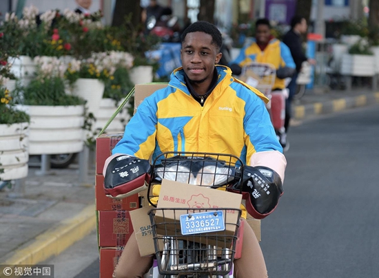 新春佳节,一批“洋面孔”悄然出现在上海的快递队伍里。当中国本土的快递小哥陆续踏上返乡归途时,这批“洋快递”将接过送货的“接力棒”,为上海市民提供服务。视觉中国供图