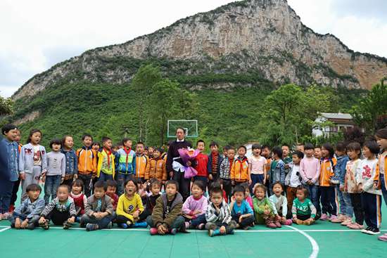 贵州省黔西县瓦房村鸭池河岸边的绝壁下,小学教师杨绍书31年间守护10多户孩子每天翻过求学路。5月5日,杨绍书及村民将搬迁到黔西县城。视觉中国供图