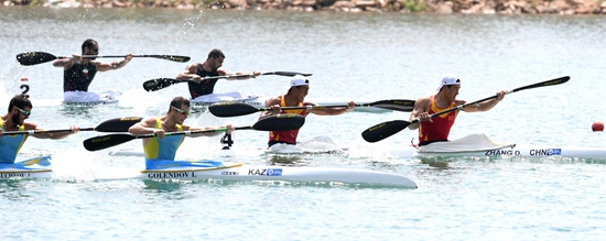 水上项目在亚运会协办城市巨港举行,今天总共进行6个项目的金牌争夺战。中国选手马亚男/孙梦雅获得女子双人划艇500米冠军,李悦获得女子单人皮艇500米冠军,张冬/卜廷凯获得男子双人皮艇1000米冠军,刘浩/王浩获得男子双人划艇1000米冠军。