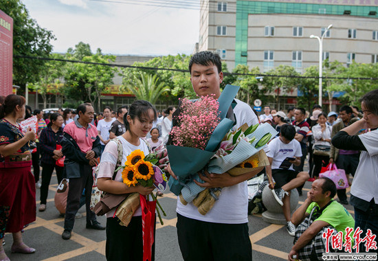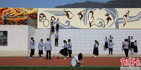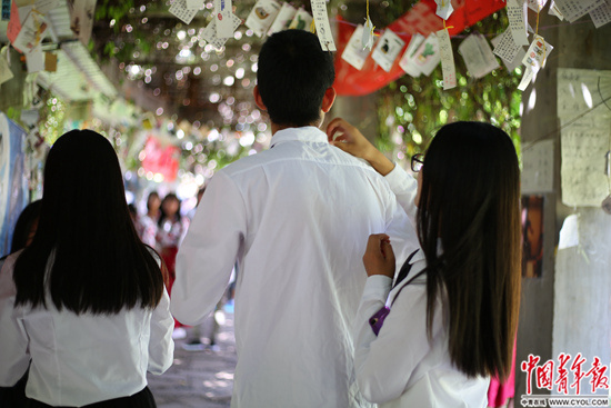 高考前4天,禄劝一中举行了高三学生毕业典礼暨成人礼。每个高三班级都有各自定制的班服,有民国学生装、日韩范儿小清新制服、古风长袍,甚至还有的班穿起了反串服装。他们拍了一上午毕业照,这边架起手机三脚架,吹着泡泡,三五成群拍起了小视频;另一边,男孩儿女孩儿在跑道上背靠背坐着,开心地望着镜头。