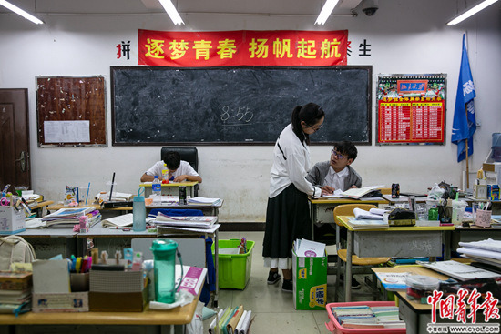 “这里的学生确实很能吃苦耐劳。”吴飞说。理科网培班讲评试卷时,为了保持清醒,不时有同学站起来听课。高考前,学校为了让高三学生调整好作息,要求晚上11点结束自习,但临近12点,还有人不愿离开教室。平日里,学习到下半夜也是常有的事。“成都七中提供了一种同龄人的参照,学生会觉得,别人可以这样,为什么我不可以。”高三政治教师张洪英说。