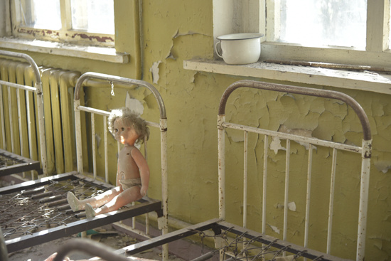 走进切尔诺贝利镇,经过苏联第二大雷达“莫斯科之眼”,第一个有着人居痕迹的是被树林包围起来的幼儿园。