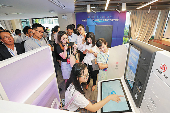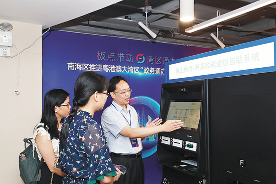 历经三年探索,南海区不断扩大通办区域,与广州市荔湾、白云、花都、南沙、番禺等五区实现“自助终端+实体大厅”通办,与广州市全城以及江门、东莞、清远、梅州等地市实现自助终端通办。目前,南海区与广州市五区实体大厅可通办事项超1000项,与大湾区九市自助终端可通办事项百余项,截至2019年5月,南海区跨城通办业务量累计超100万件。