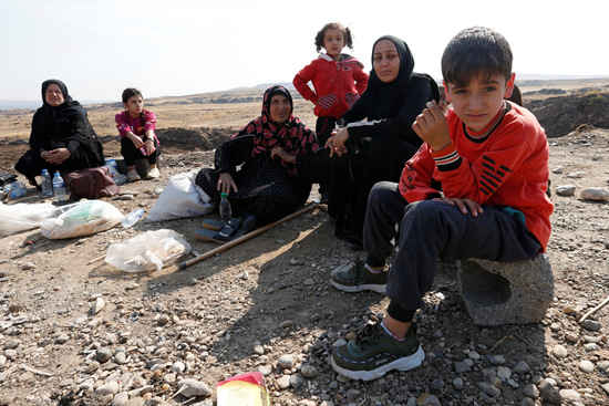 当地时间10月21日,叙利亚代里克,流离失所的库尔德人在土耳其进攻叙利亚东北部后被困在边境,等待进入伊拉克境内。视觉中国供图