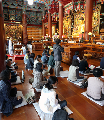 11月12日,韩国釜山的寺庙为即将参加韩国“高考”的考生举行“法会”。韩国2020学年大学修学能力考试(高考)将于14日进行,韩国全境将在英语听力考试时间段(13:05-13:40)限制飞机起降。视觉中国供图