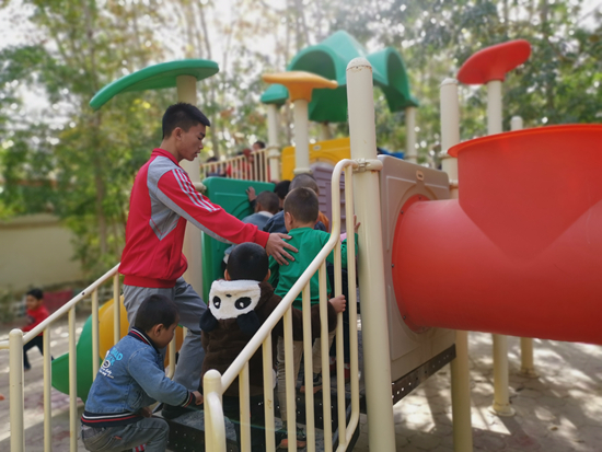 到了新疆,那里孩子的热情出乎他意料。走在幼儿园里,看见这个陌生男老师,有的孩子会主动跑过来伸手让他抱,有的会拉着他的手转圈圈,还有的小男孩会故意把球踢到他脚下,逗他跟孩子们一起玩。