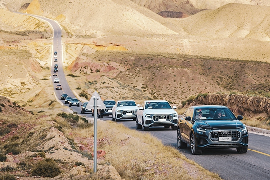 在宁夏中卫的山路石滩、沙漠草原,全新奥迪Q8载着体验者追逐朝日斜阳,瞬间成为大漠风光的一部分。