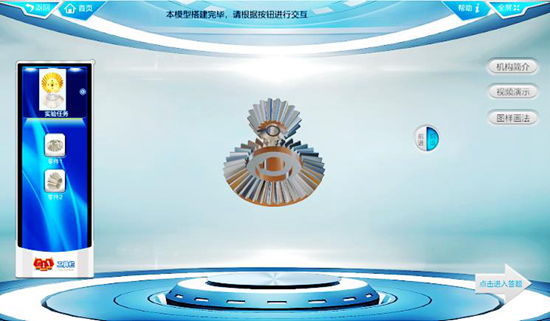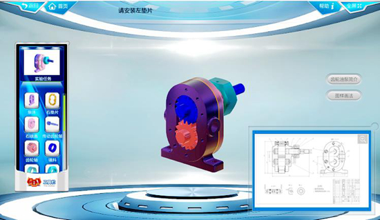 学生们一边观察机械结构和工作原理,一边动手拆装齿轮油泵零件。而大到教学楼,小到齿轮零件,都是通过虚拟仿真技术生成的,学生们人在家中,即可在线完成一系列实验操作。