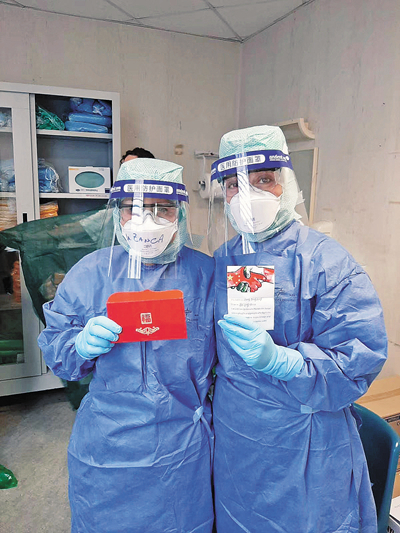 没多久,人们就在当地的电视节目中看到,有医生护士戴的面罩上,印着一行汉字:“医用防护面罩”。