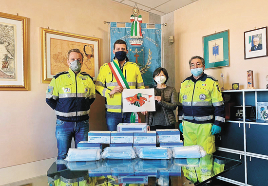就像威尼托大区某市的市长在感谢视频里说的那样:“我曾以为我们相距万里,但实际上只是地理上相距万里而已。在我们的国家,我们的城市需要帮助的时候,是你们站在我们身旁,捐赠了这些宝贵的物资。在这艰难的日子里,这些物资是基本所需,甚至比面包还要不可或缺。”他笔直地站在办公室窗前,身上披着意大利国旗绶带。话末,他伸出双臂,隔空做出一个意大利式的“拥抱”。