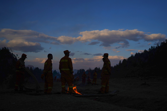 这时的风已经失去方向,浓烟火星将一切遮蔽。对讲机里传来西昌大队大队长张军的声音,让队伍沿着公路赶紧下撤,一连重复了好几遍。下山的方向火烧到了公路下方,正在朝队伍烧过来。