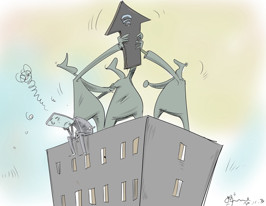 商务楼宇宽带费用昂贵,企业、租户高呼“用不起”。物业、开发商和二级运营商合伙制造垄断,宽带用户“爱买不买”毫无选择权。设施老旧网速慢,理论带宽只是“看上去很美”。最近,工业和信息化部等五部门印发《关于开展商务楼宇宽带接入市场联合整治行动的通告》,有望打破商务楼宇宽带网络业务垄断格局,为用户享受提速降费政策红利打通“最后一公里”。(《人民日报海外版》11月3日)漫画:徐简