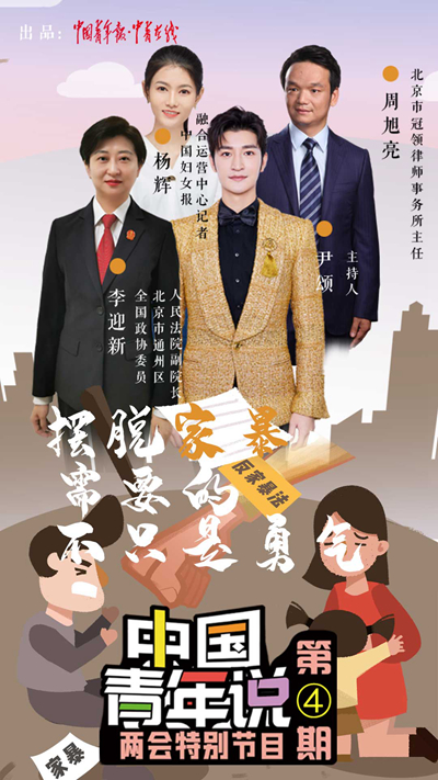 《中华人民共和国反家庭暴力法》实施5年来,社会公众反家暴意识在不断提高,可恶性事件仍然时有发生,如何才能从根本上减少家暴?《中国青年说》两会特别节目第四期,主持人尹颂和全国政协委员李迎新以及青年代表一起深入探讨家暴与女性权益保护问题。扫一扫二维码,查看更多精彩。