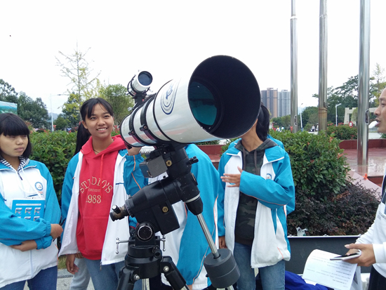 通州中学余下的几架望远镜差不多也是“化缘”得来的。陈礼碧和同事自驾去参加云南星空大会,主办方把特别大奖——一架天文望远镜,留给这几位远道而来的客人。有家望远镜公司送了他们一架,杭州高级中学的学生来平塘县举办活动,也送了他们一架望远镜作为礼物。