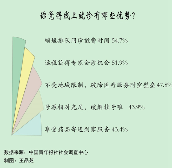 近日,中国青年报社社会调查中心联合问卷网(wenjuan.com),对1508名受访者进行的一项调查显示,63.2%的受访者体验过线上就诊。54.7%的受访者觉得线上就诊缩短了排队问诊缴费时间。但是,接诊医生是否有执业医师资格证和平台信息是否准确是受访者比较担忧的。60.5%的受访者建议医生职业信息透明化。